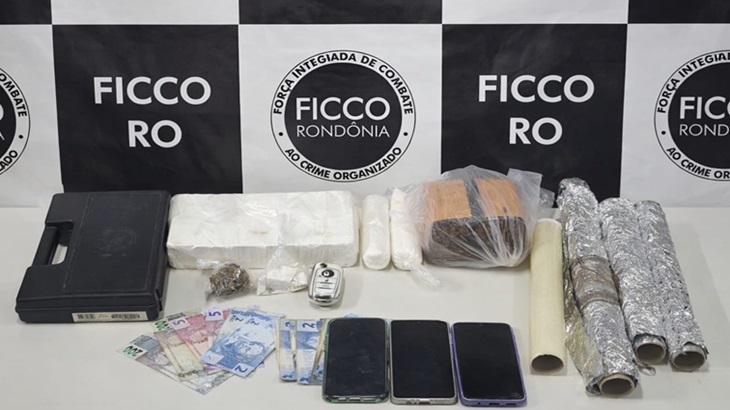 Durante o cumprimento da medida judicial, o investigado foi localizado em posse de tabletes de cocaína e maconha. As buscas resultaram na apreensão de insumos utilizados para o refino e endolação de drogas, como papel filme e papel alumínio.